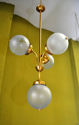 Lámpara con 4 luces , lámpara clásica original con 3 globos de cristal antiguos tallados y globo central sin tallar. debido a su longitud es ideal para iluminar estancias con techos altos.