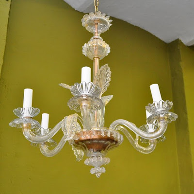 Araña de cristal antigua de cristal veneciano , lámpara de 6 brazos. Medidas sin contar florón y cadena: 60 x 55 cm.