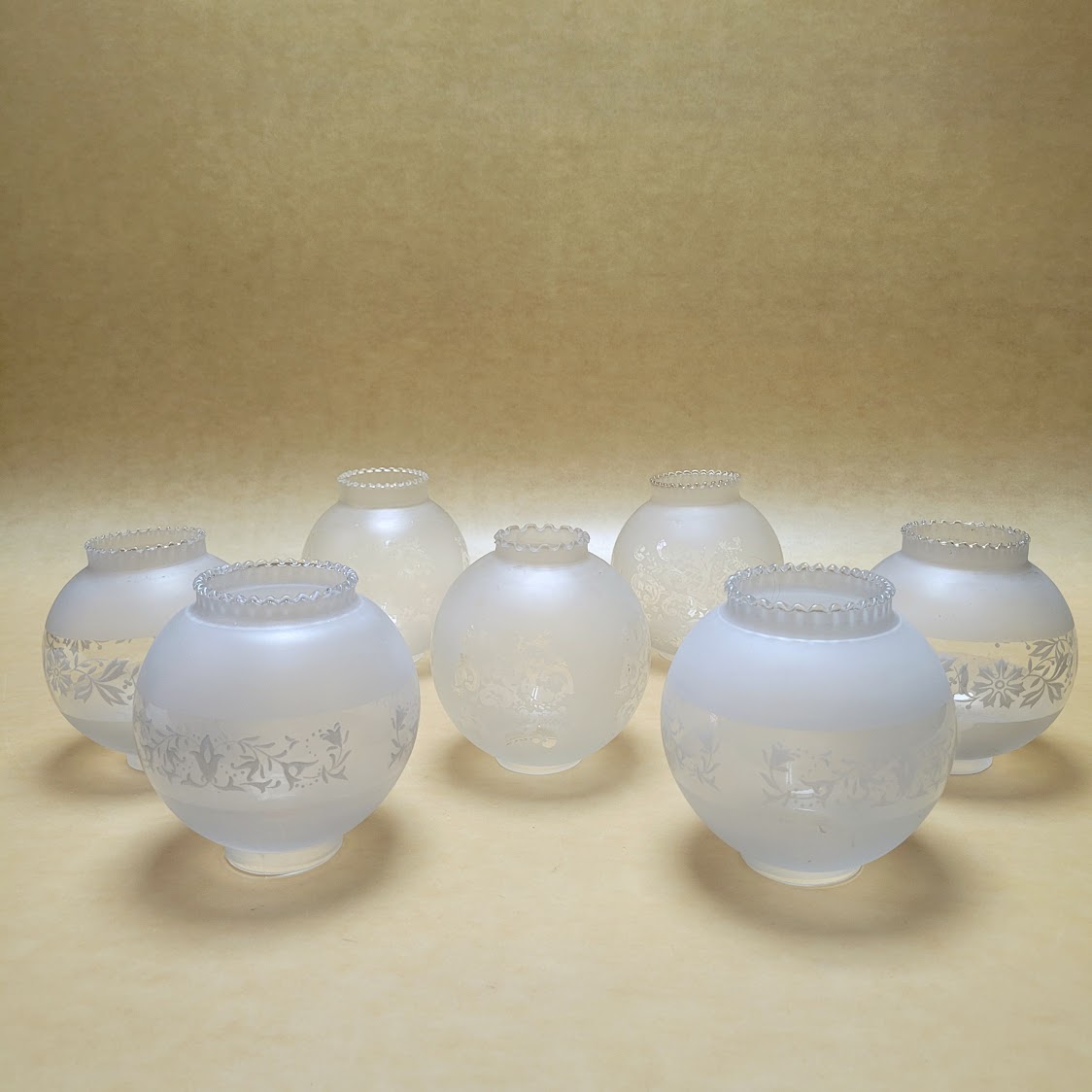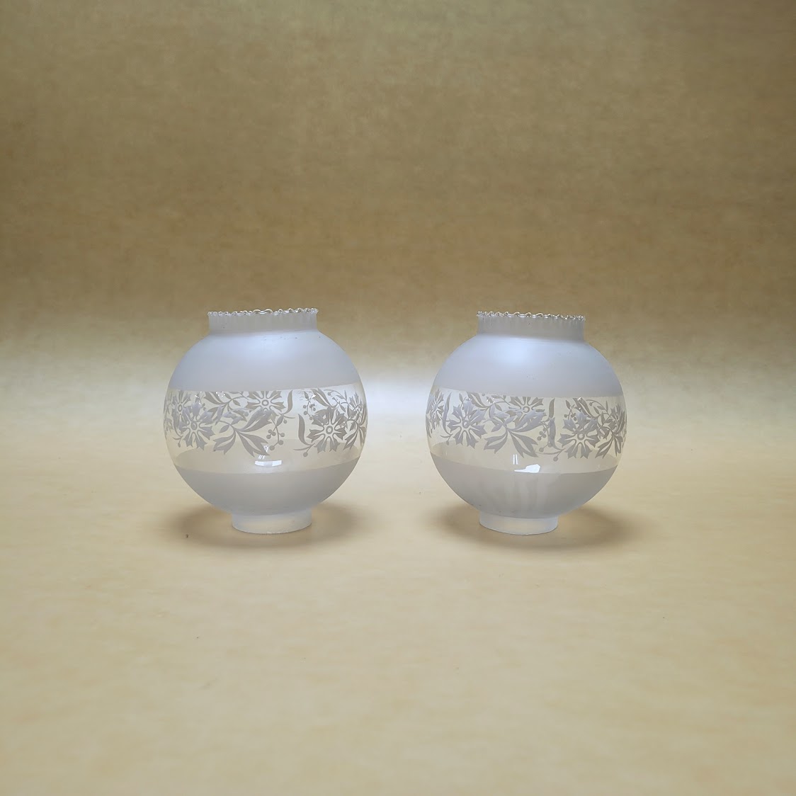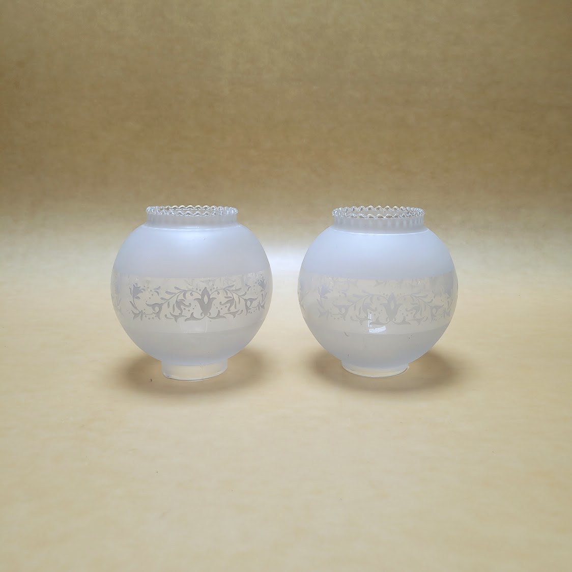 Bolas de cristal satinadas con diferentes decoraciones grabadas son antiguas y pueden presentar alguna imperfección por el paso del tiempo