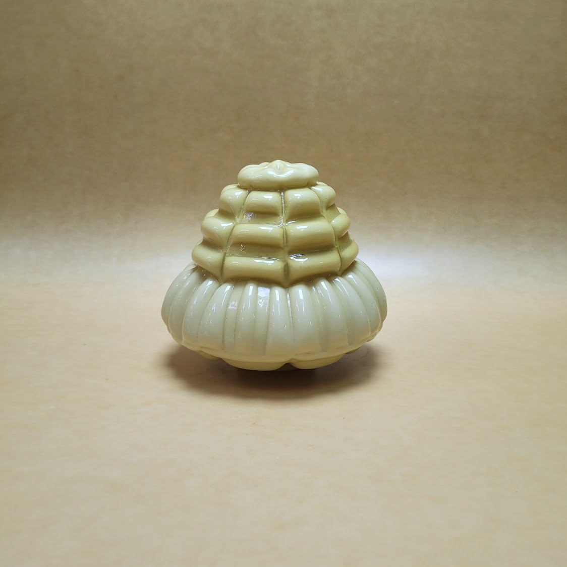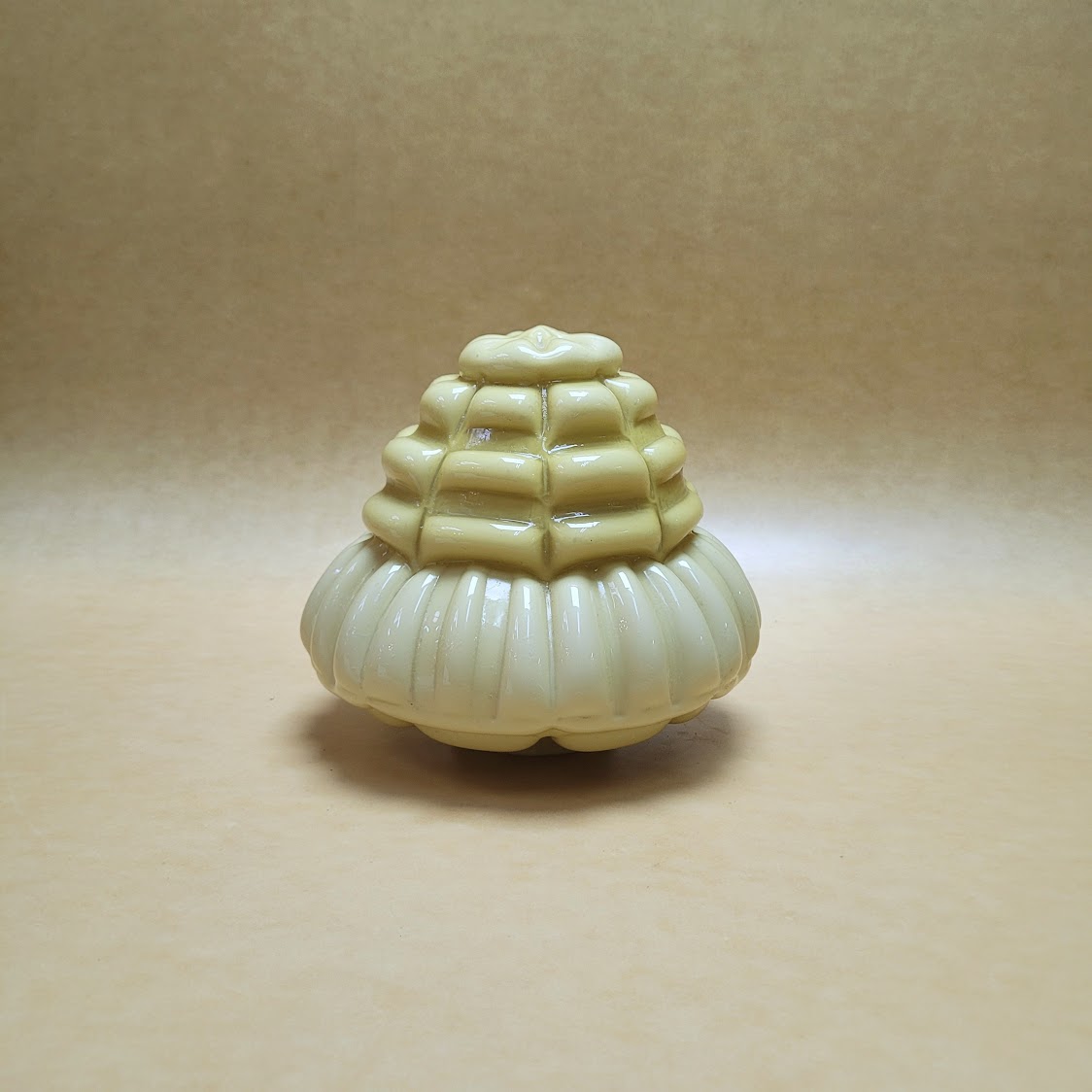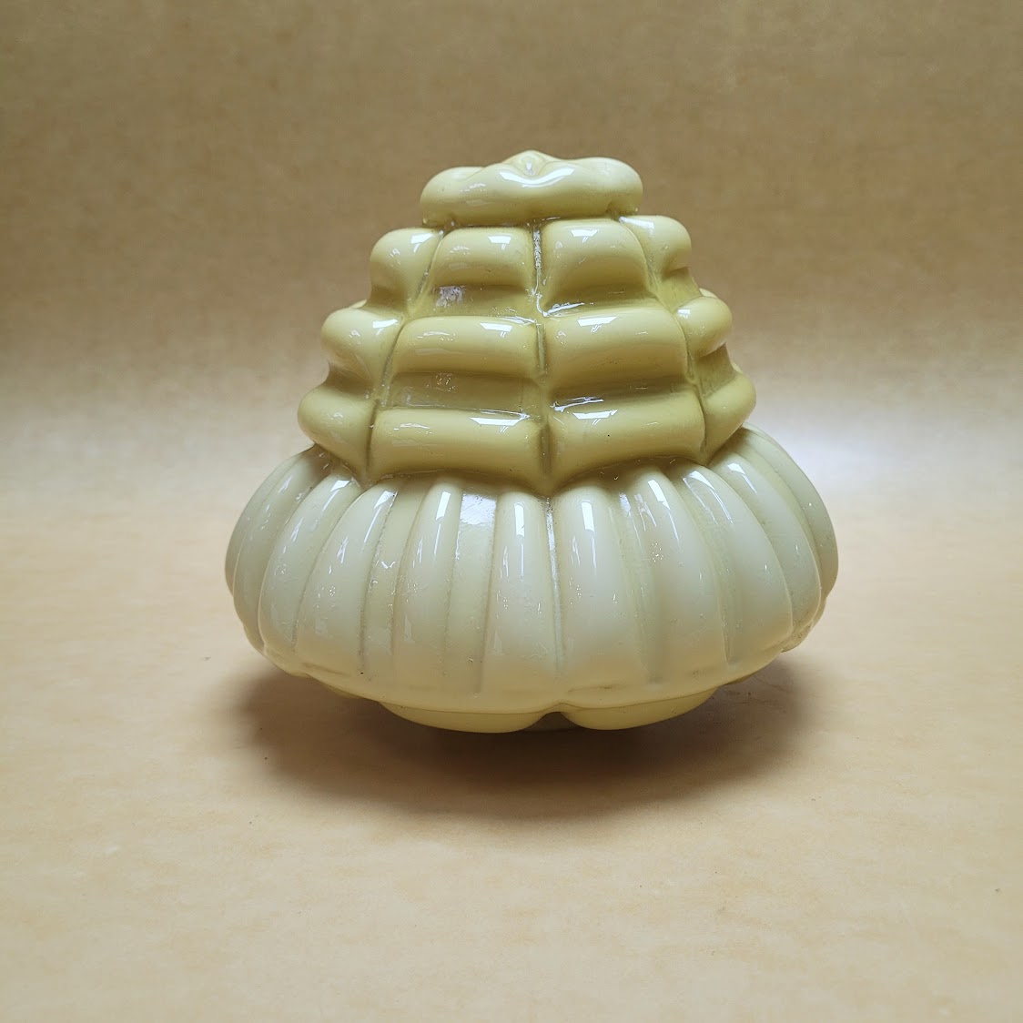 Tulipa cristal antigua original años 20 en color ámbar , opalizada , con volumen geométrico  en escala