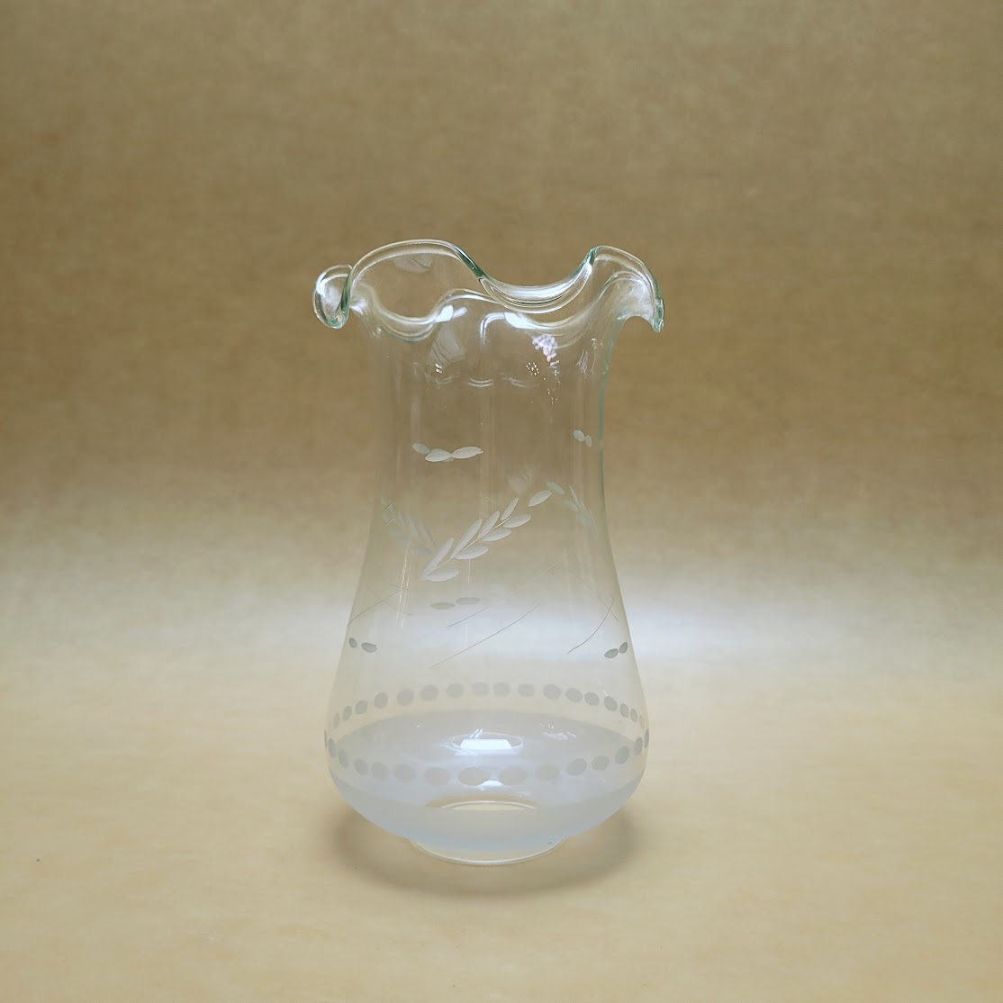 Tulipa de cristal tallada motivo decorativo  espigas con base en cristal satinado y cuello festoneado