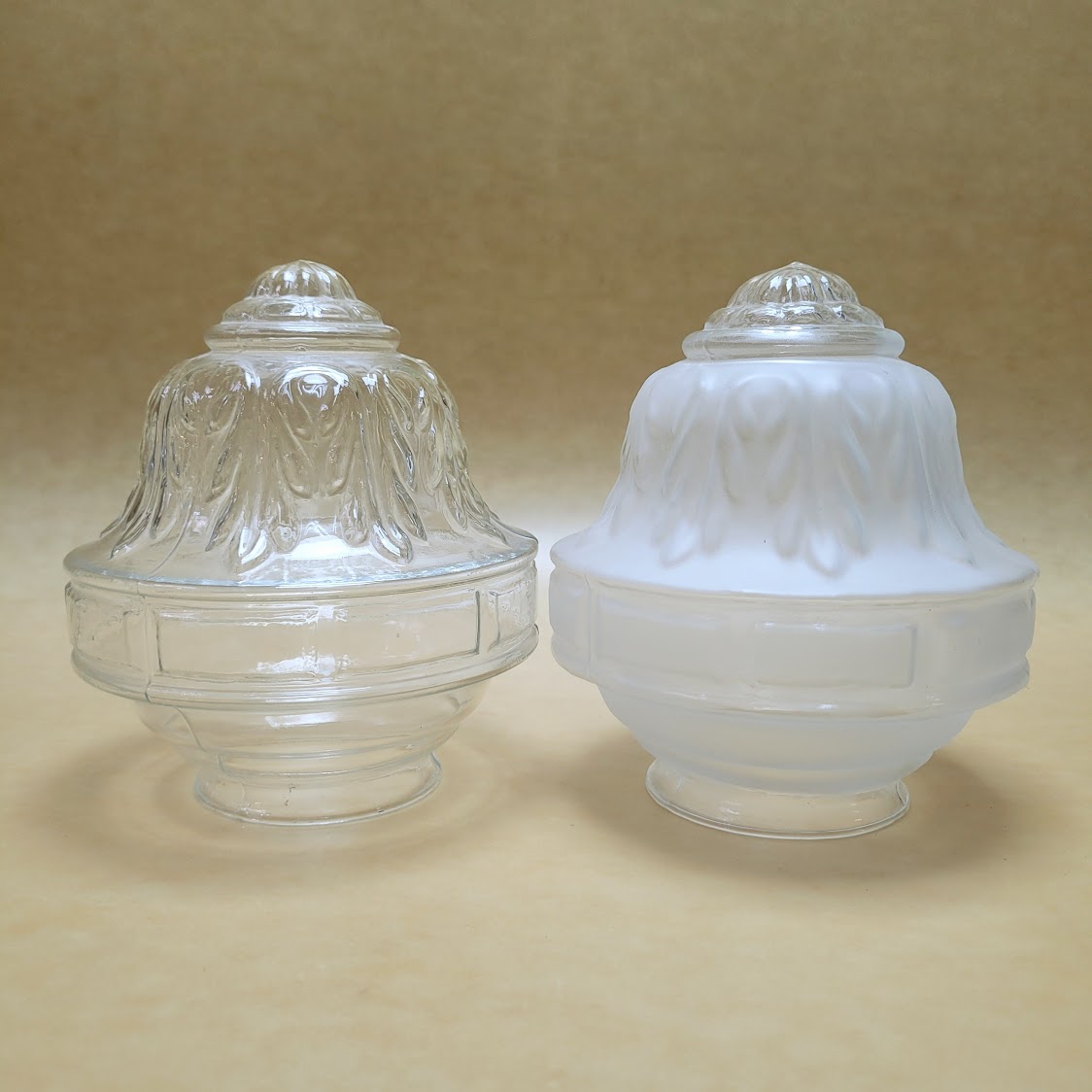 Replica tulipa piña grabada con motivos floral hoja acanto. Disponible en cristal transparente o satinada