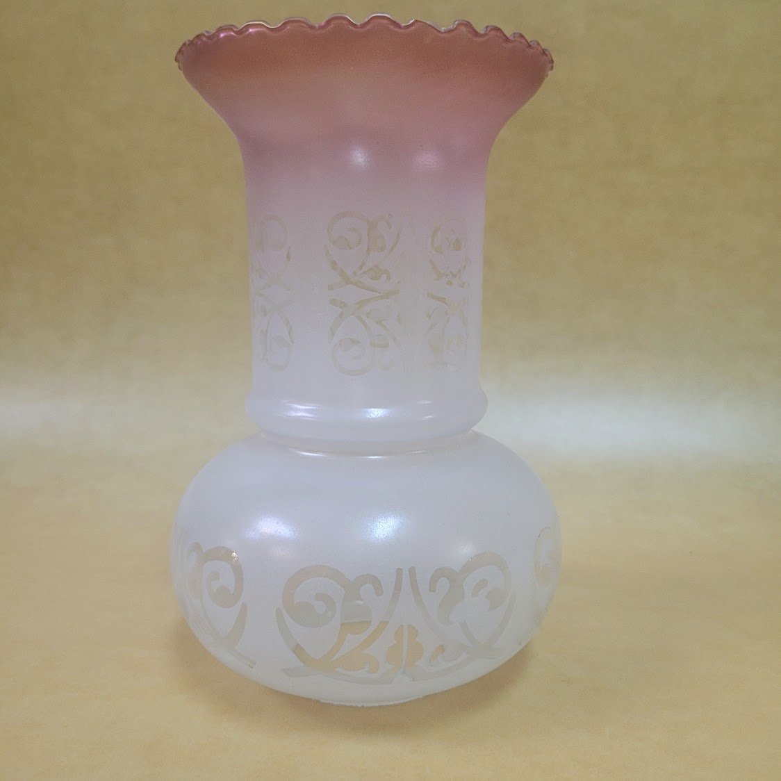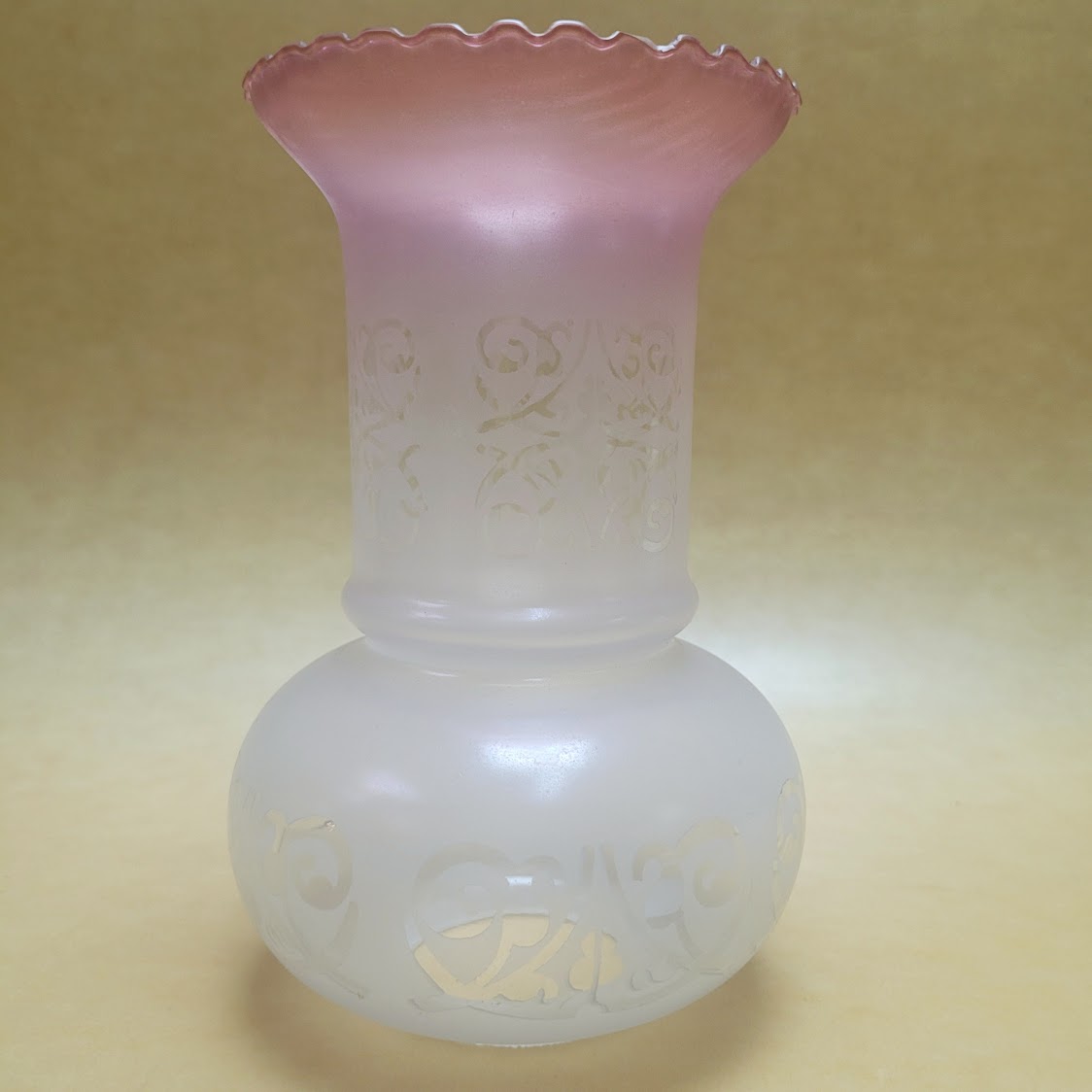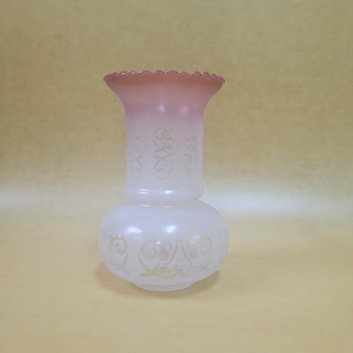 Tulipa cristal estilo romántico  de cristal satinado con grabado y borde superior color rosa