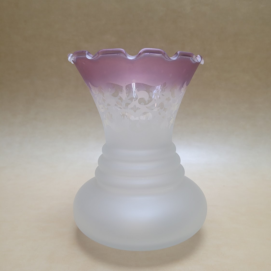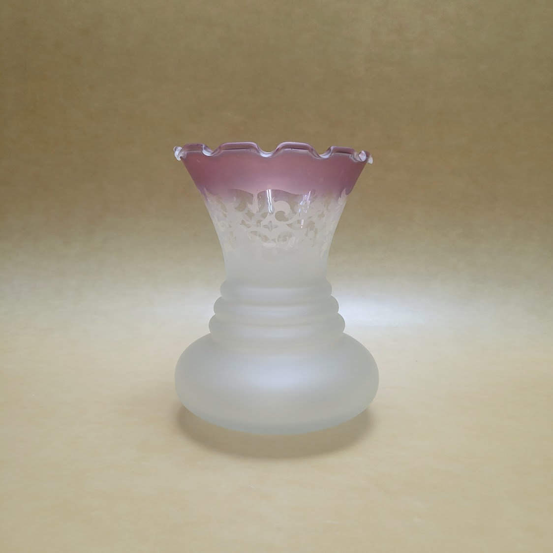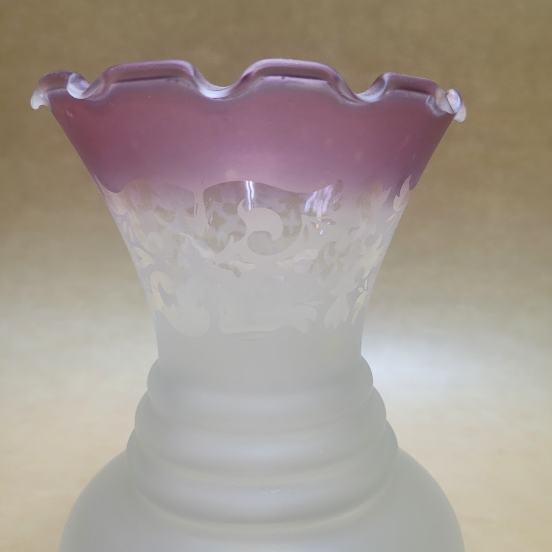 Tulipa de cristal acabado satinado con decoración en la parte superior y borde matizado en rosa