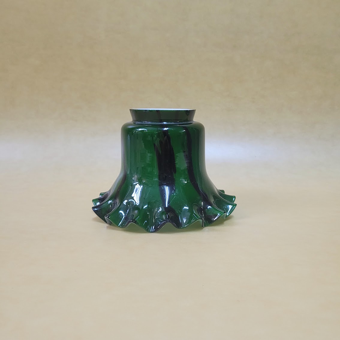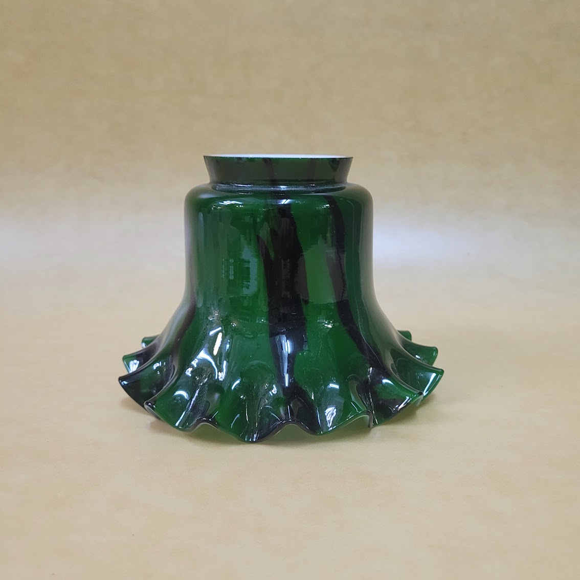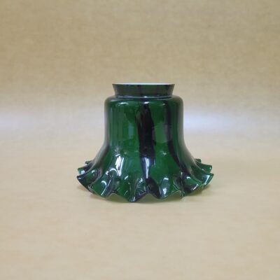 Tulipa de cristal opalizada decorada en color verde billar y rayas irregulares en negro