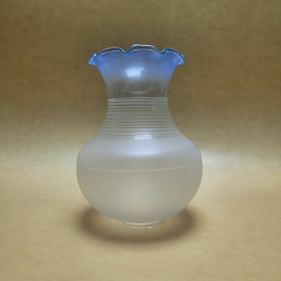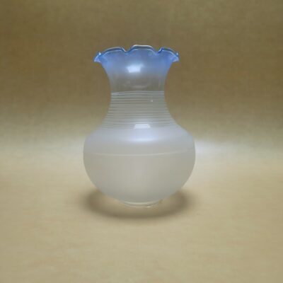 Tulipa de estilo vintage en cristal satinado y cuello claro , cristal transparente de color azul , cuerpo rayado